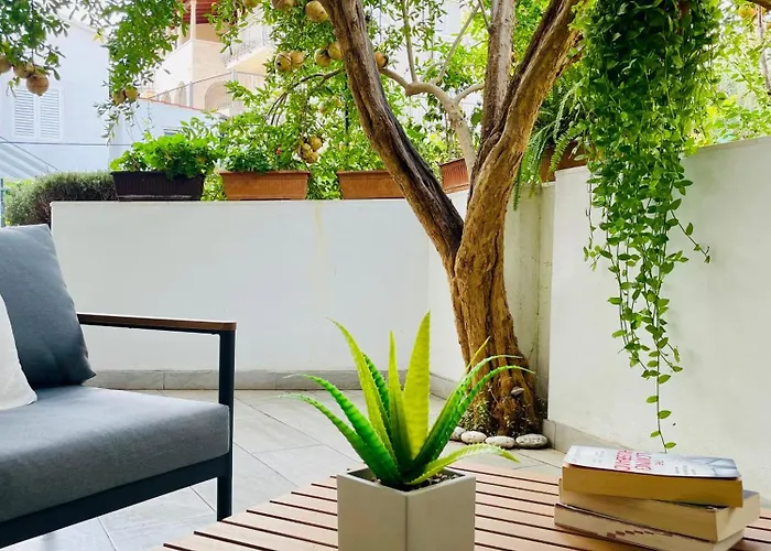 Disfruta de tus vacaciones en Hvar Town en Pina Hvar Apartment. Ideal para quienes buscan una experiencia auténtica, está situado a 5 minutos en coche de la Playa Jerolim y a una distancia de 1 km de la Fortaleza Española. Este apartamento dispone un patio con vistas al jardín.